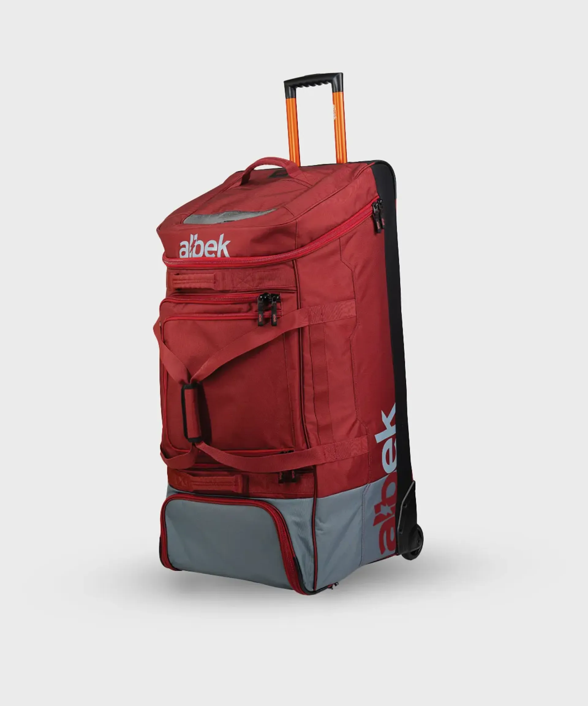 This is a travel-ready bag. A moulded base protects your gear. Heavy-duty wheels and a telescopic handle mean airports and paddocks don’t slow you down. The Albek Cush™ carry handle gives you a comfortable lift. Materials are built to last so the bag takes a beating and keeps going.