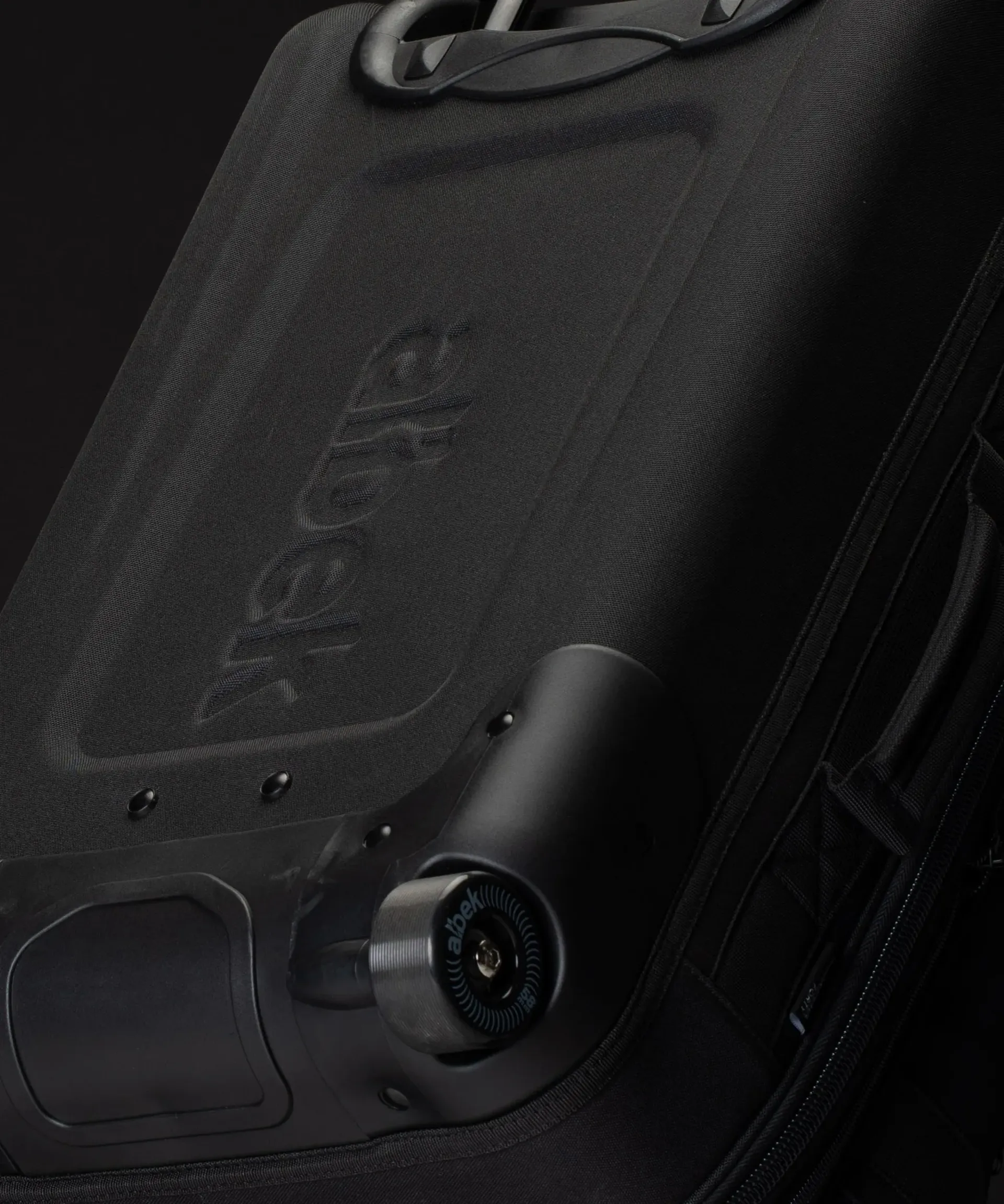 The base uses a lightweight monocoque compression-moulded shell for shape and protection. Wheels are replaceable via the Albek Izuma™ wheel assembly, so upkeep is easy and the bag stays in service. There’s also an ID tag and a discreet “Custom Projects” embroidery zone for personalising your kit.
