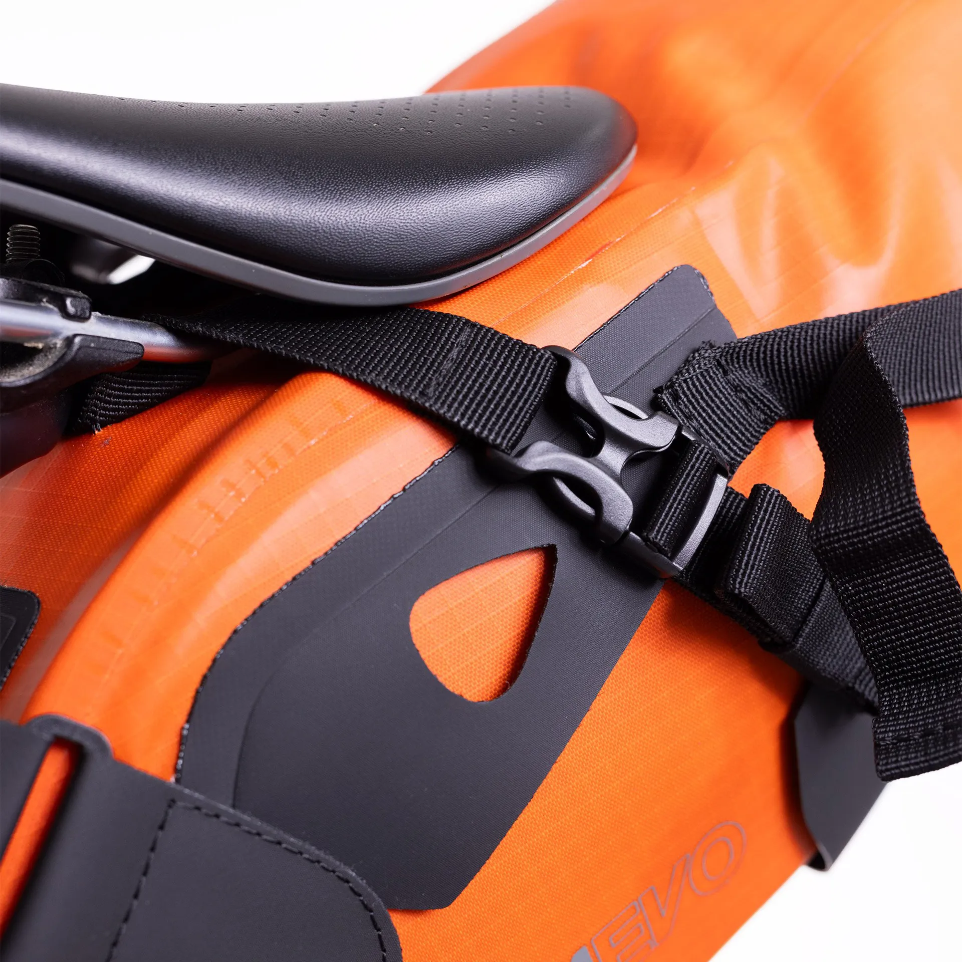 Two strong hook & loop straps that fix around the seat post have been added alongside two clips that lock around the saddle rail which reduces sway and maintains stability from the rear of your bike. Combined the two help you to stay comfortable and in control when the terrain gets rough.