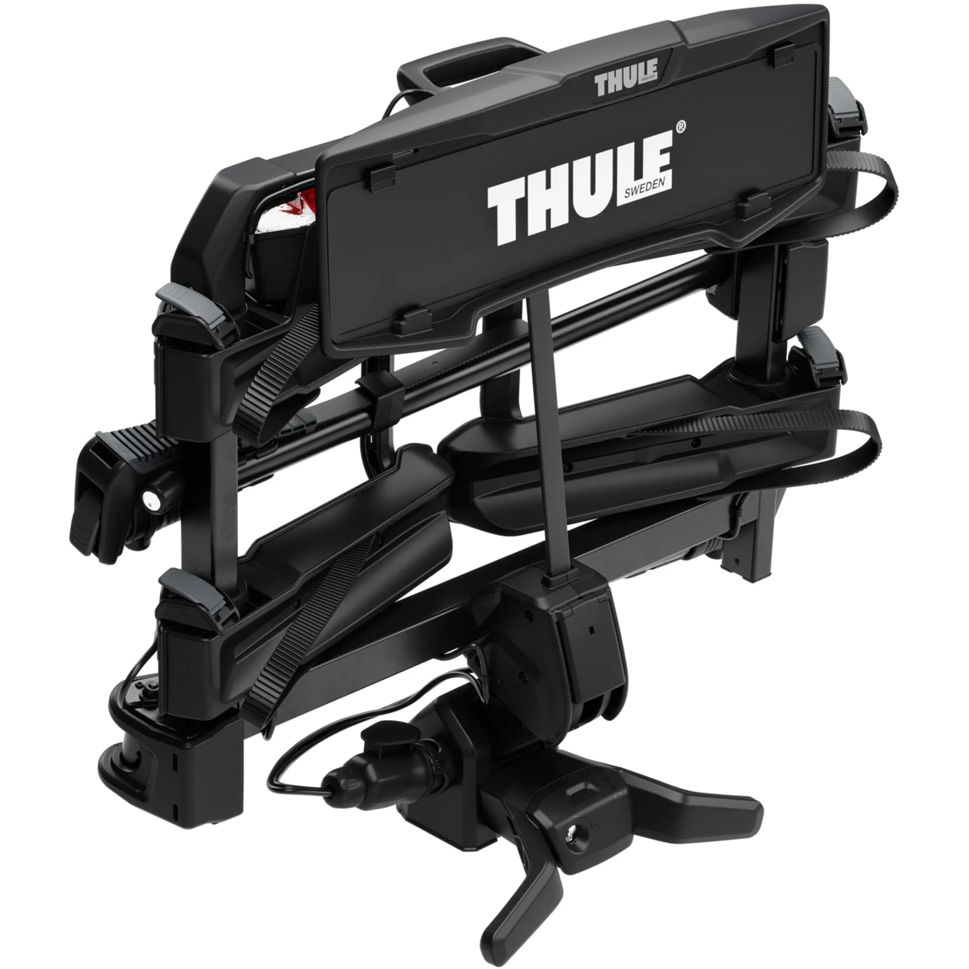 Versatile and accessible - With the capability to transport up to two and three bikes and a special tilt-up function, Thule OutPace reduces its footprint when parked, minimizing the risk of damage. The integrated lamps ensure visibility and safety.