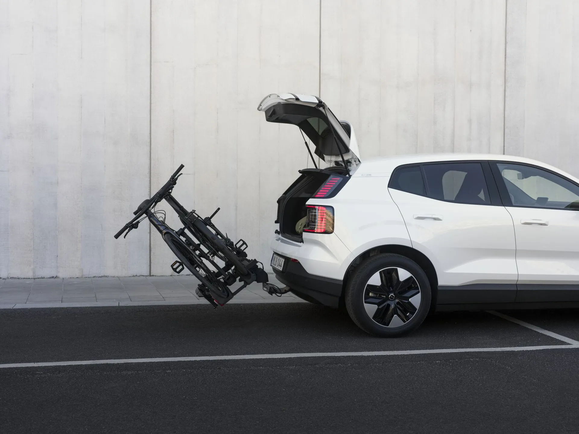• Stilts up towards the car when parked, making it ideal for urban use. Note: The bike carrier must not be driven in the upright position; this feature is for parking only