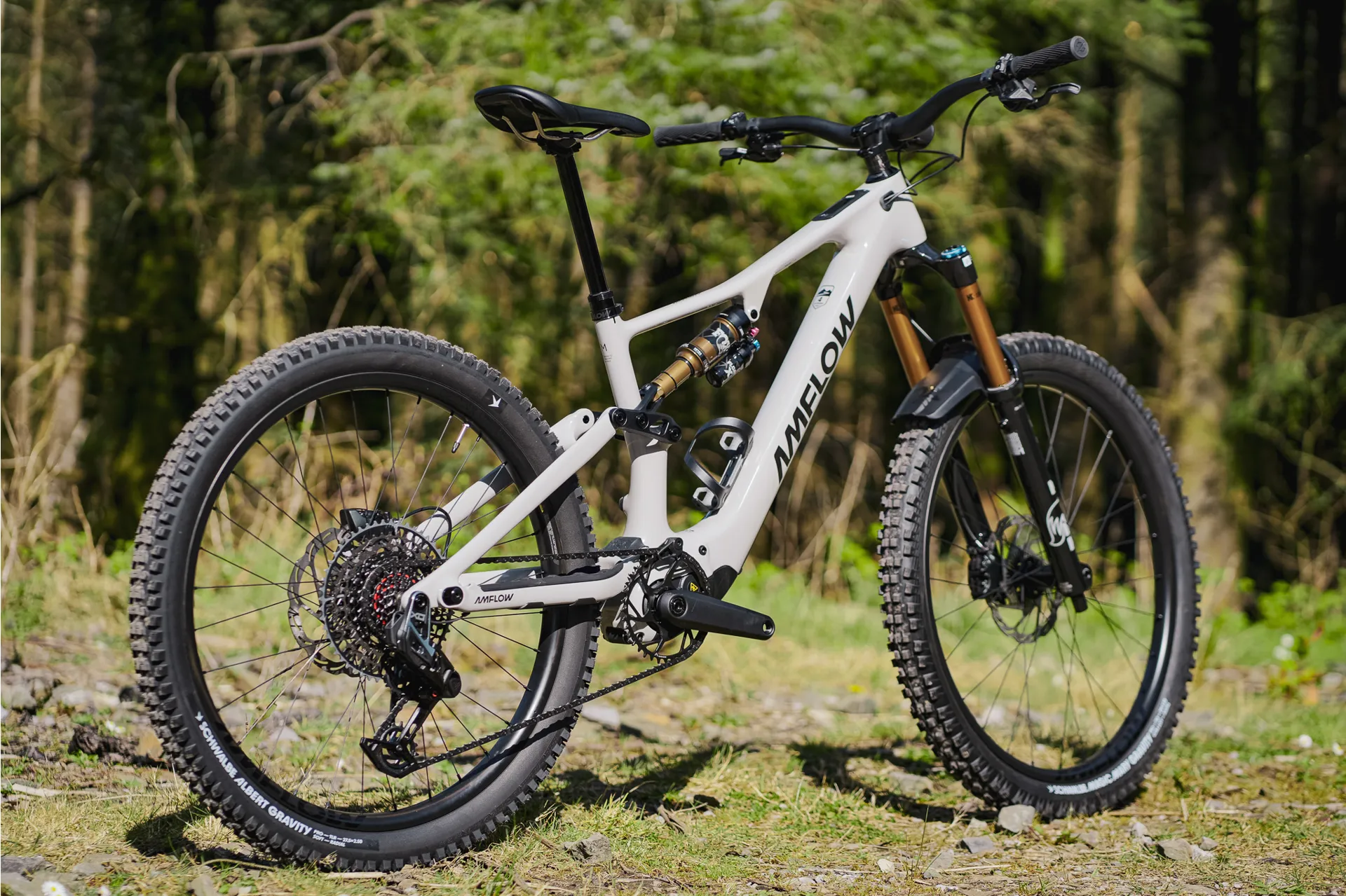 • Amflow Enduro Carbon handlebar, titanium saddle, adjustable dropper post options