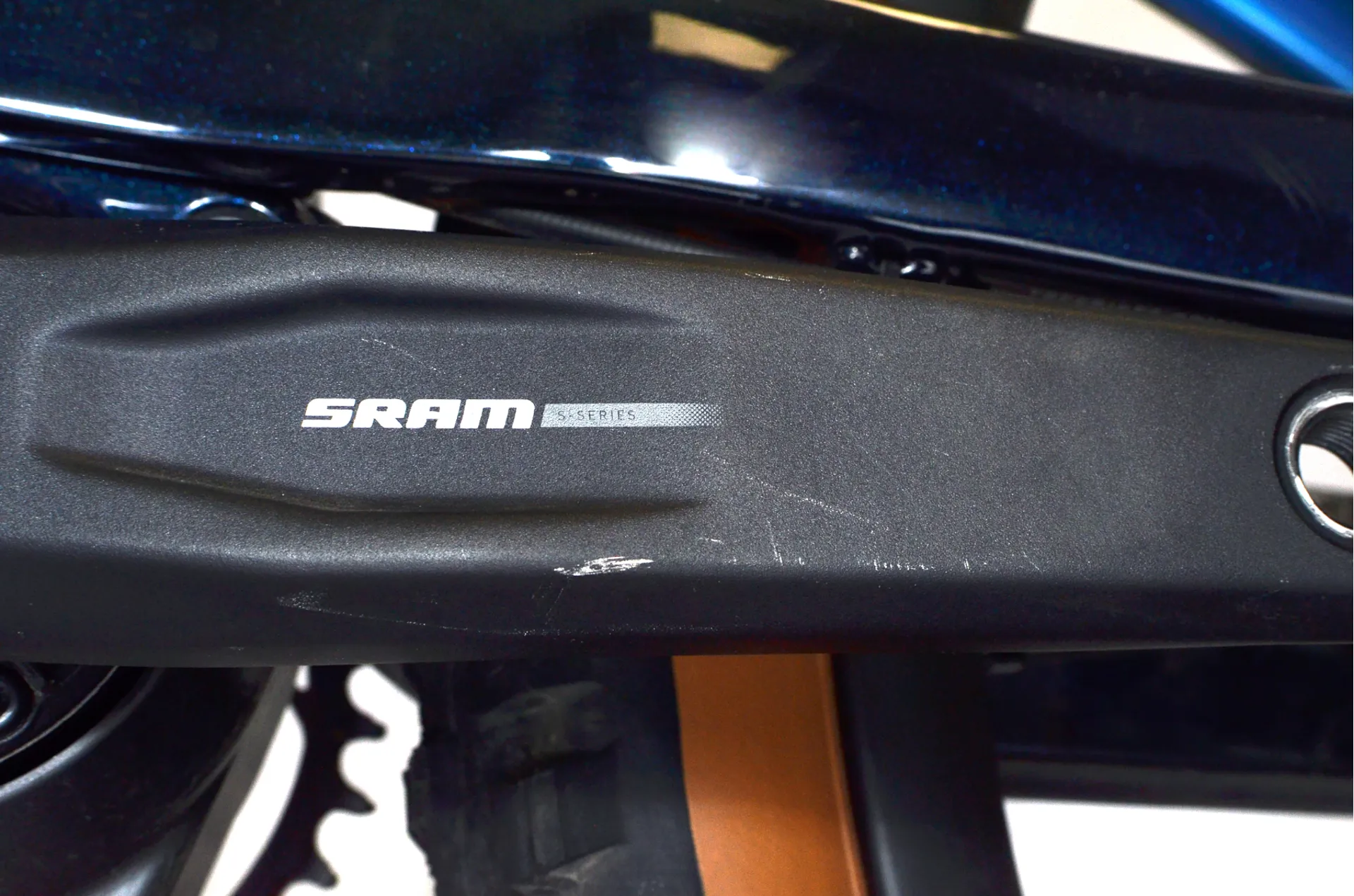 This bike has cosmetic damage to the top tube, down tube, handlebar, crank arms and fork. The bike's odometer reads 229 km covered and the battery has undergone 4 charge cycles. We have taken pictures of the cosmetic imperfections, please inspect the images before making a purchase.