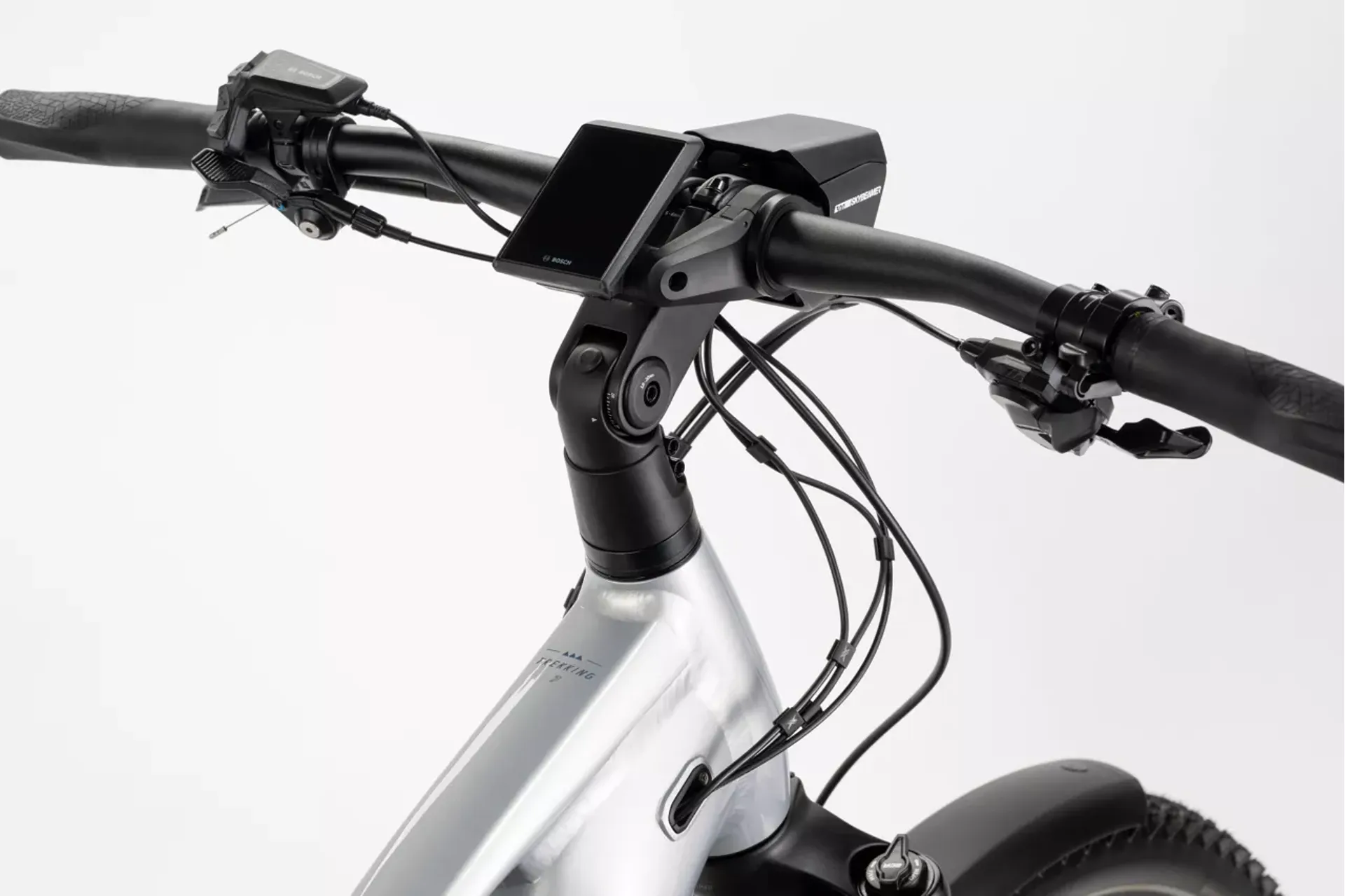 Riding fun meets comfort meets versatility. Whether it’s a sporty afterwork ride in the woods, your daily commute or a multi-day tour with luggage – our TREKKING 7 can do it all. This premium trekking eBike will impress you with its versatility, sense of adventure and high level of comfort. The powerful Bosch Performance CX motor provides strong support whenever you need it. With the 800Wh battery and the optional Range Extender, even full-day tours are no problem. The 100mm SR Suntour suspension fork ensures you’re well-equipped for moderate off-road rides, and the adjustable stem allows you to fine-tune your riding position. Plus, with StVZO features like mudguards, a rear rack and lighting, this eBike is fully road-compliant. Available in both high and low-frame versions. Perfect for those who value fun, comfort and versatility on every ride.