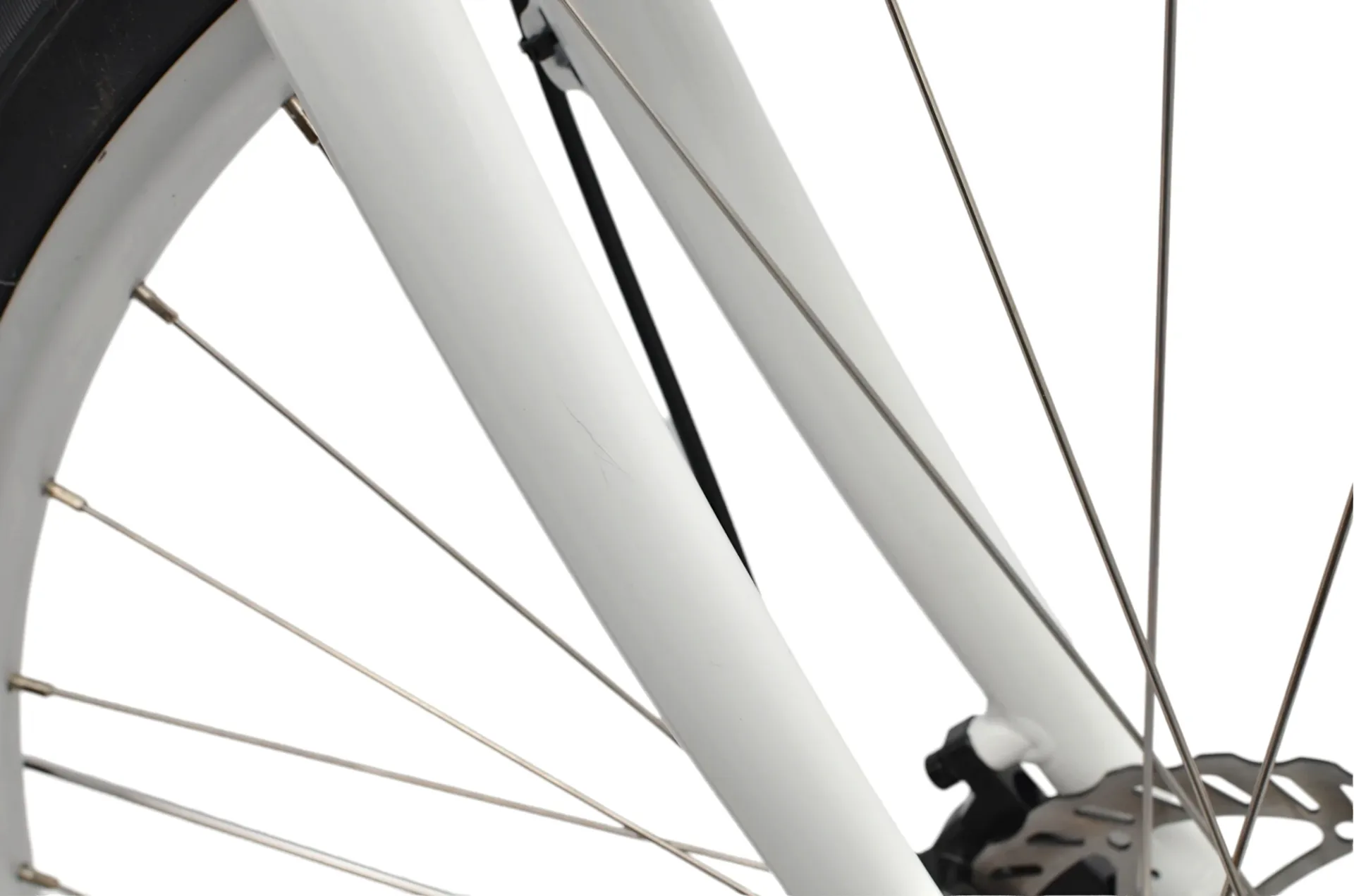 This bike has cosmetic damage to the fork and kickstand mount. We have taken pictures of the cosmetic imperfections, please inspect the images before making a purchase.