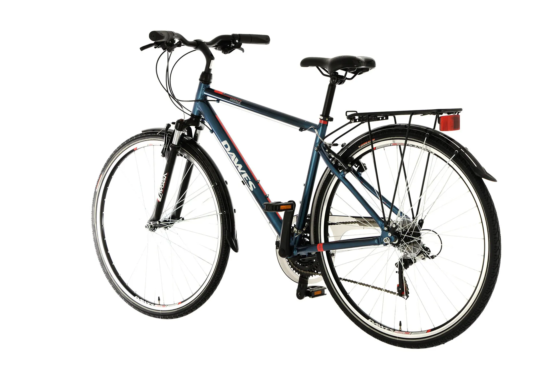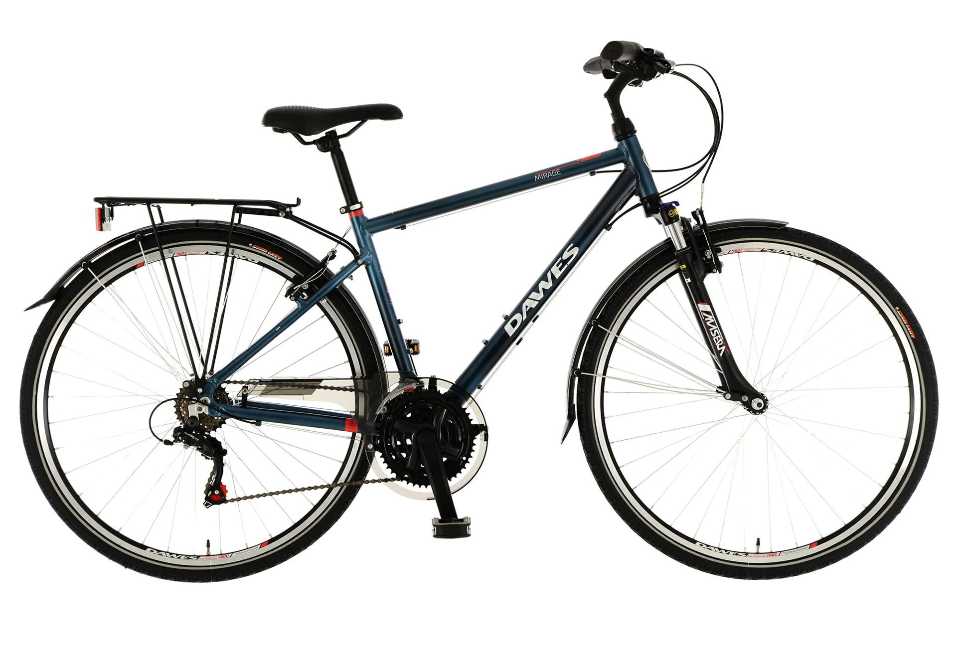 The Dawes Mirage has been a long-standing member of our Dawes range, and it's easy to see why. Fitted with everything you might need for the daily commute or family bike ride, we've upgraded the Mirage with lock-out suspension forks so that it can adapt to whatever terrain you find yourself. 700x38C tyres help absorb the bumps even further and with ergonomic comfort grips and a cushioned saddle, the Mirage really does offer comfort in a class above its price tag.
