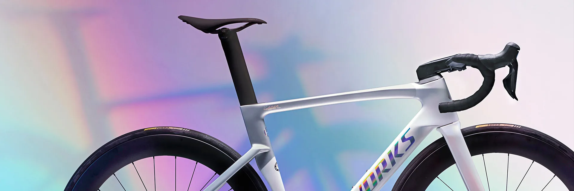 With the Sagan Collection, we’ve developed two different personalities of Peter’s racing style and transformed them into a collection of products—Overexposed and Underexposed. The Overexposed collection highlights the “star-of-the-show’ side of Peter, with loud, yet elegant silvers—all with touches of rainbows, of course. On the other hand, the Underexposed Collection represents the reserved, “below the radar” Peter with blacks, greys, and, you guessed it, rainbows. Each piece represents the highest quality in materials, from the rainbow-refracting paint, to the custom wheels and tires.
