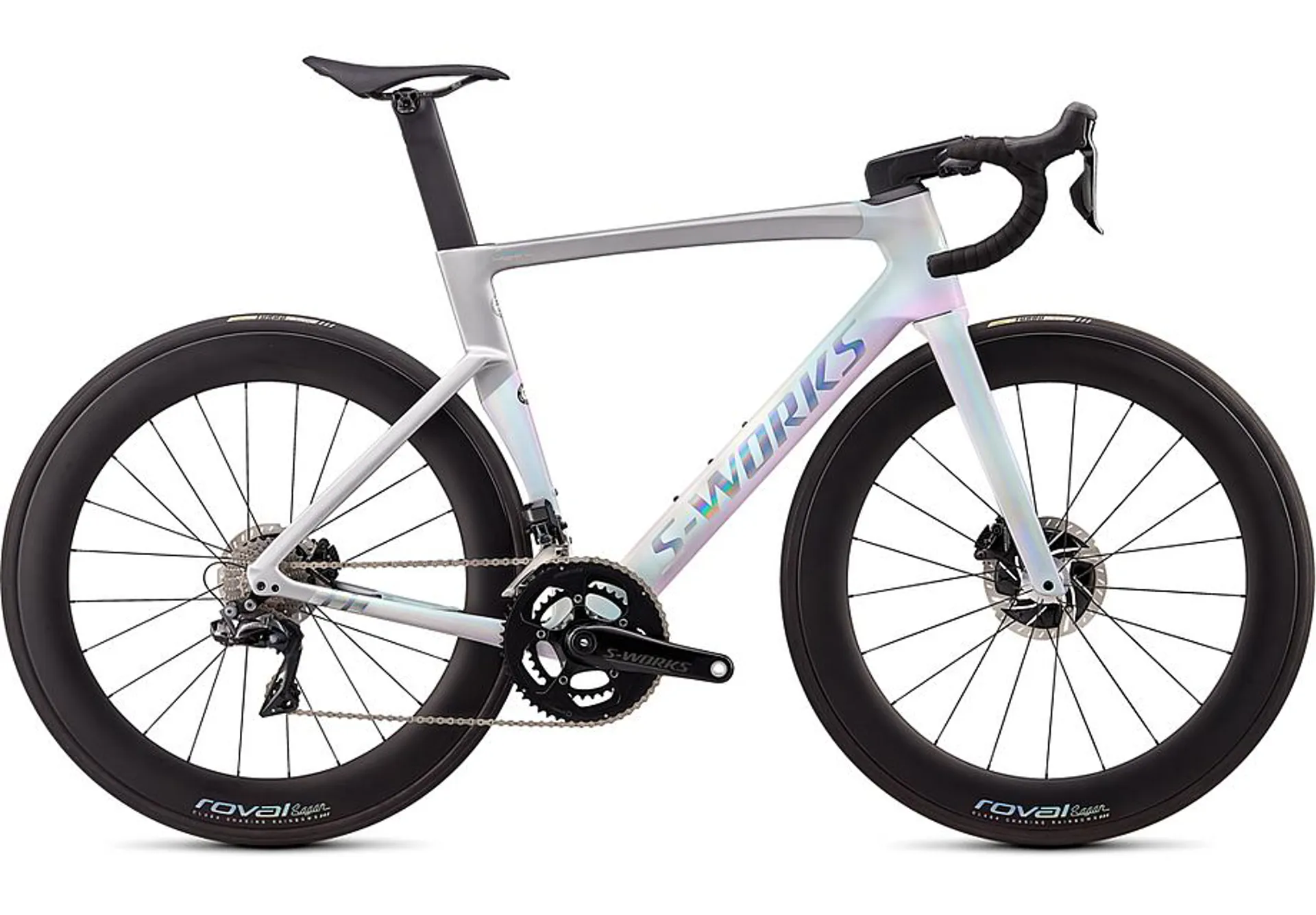 • Front Wheel: Roval CLX 64 Disc - Sagan LTD, carbon, tubeless-ready, Win Tunnel Engineered, 64mm depth, CeramicSpeed bearings, 21h