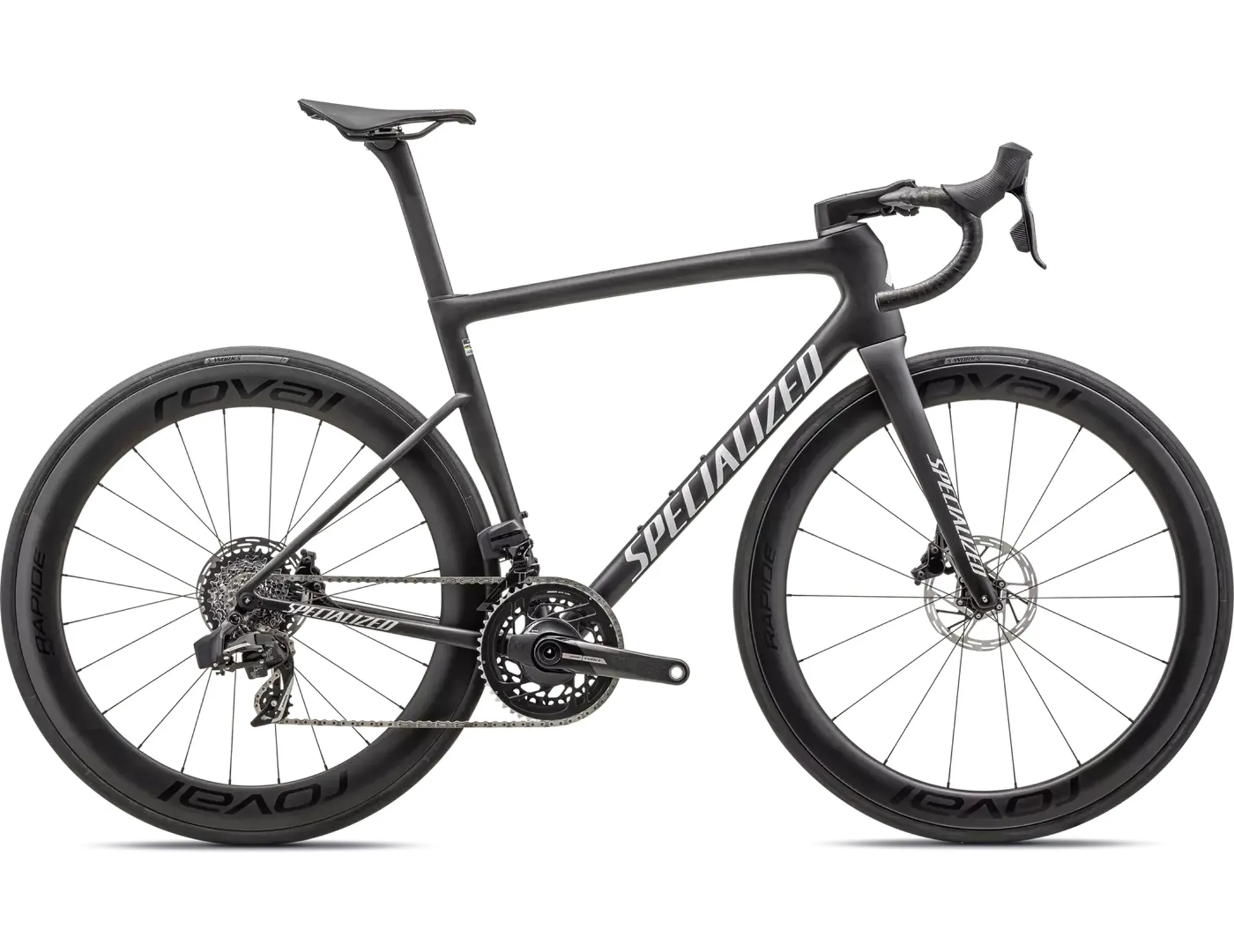 • The Tarmac SL8 Pro delivers exceptional performance with a full SRAM Force eTap AXS groupset with a power meter, Roval Rapide CL II tubeless-ready wheelset, and a Roval Rapide Handlebar with an SL7 stem. You’re ready to race out of the box.