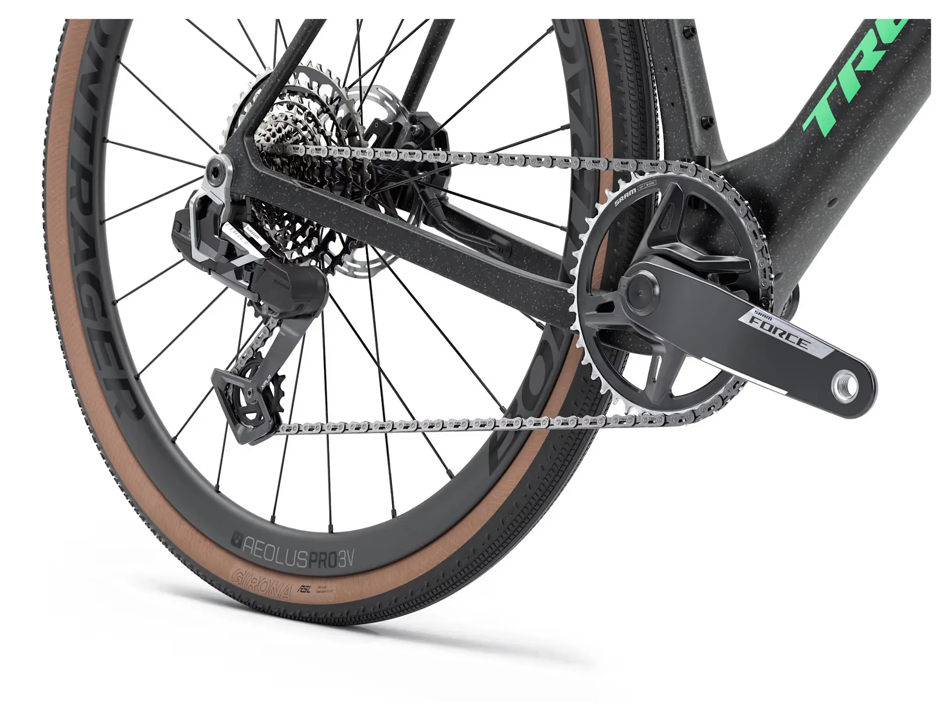 • Chain: SRAM Force E1, 12/13-speed*Wheel Front: Bontrager Aeolus Pro 3V, OCLV Carbon, Tubeless Ready, 25 mm rim width, 100x12 mm thru axle