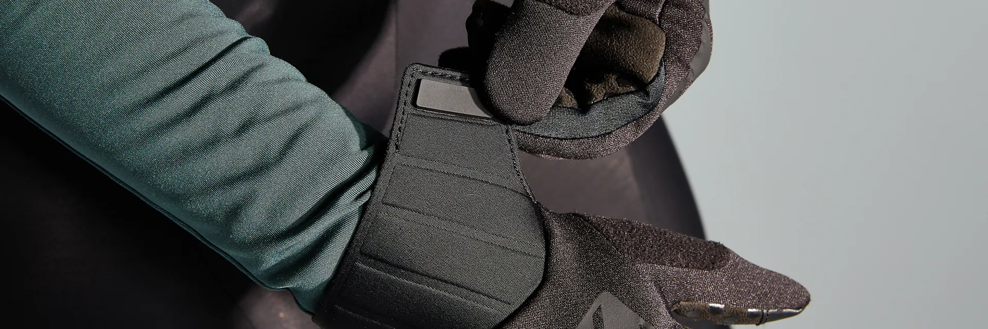 Velcro cuff allows for micro-adjustments in fit, so that you can wear this glove under or over your jacket cuff.
