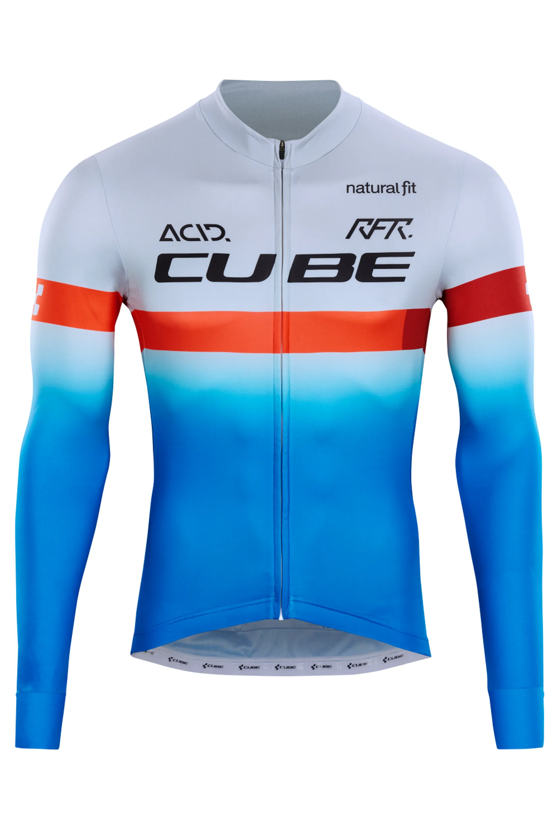 Question(s) answered about Cube Teamline Long Sleeve Jersey - Blue/Red/Grey