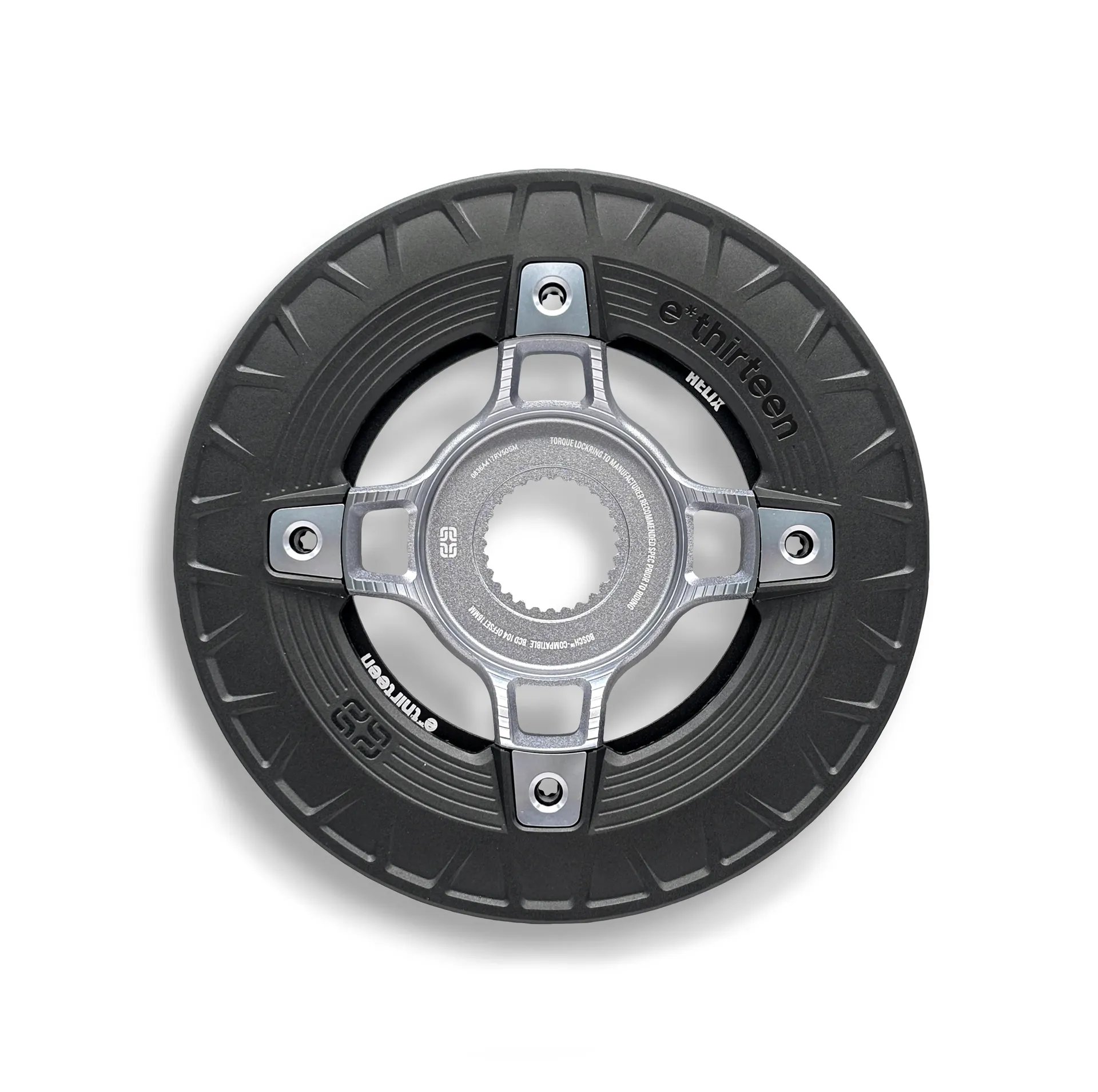 DJI Avinox motor systems expose the chainring and chain to impacts on heavier e-bikes and lack standard ISCG mounts. The ethirteen espec Turbocharger addresses this by integrating a rugged Bashguard with a 104 BCD Spider and Helix 104 BCD Chainring to provide targeted defence where it’s needed most.