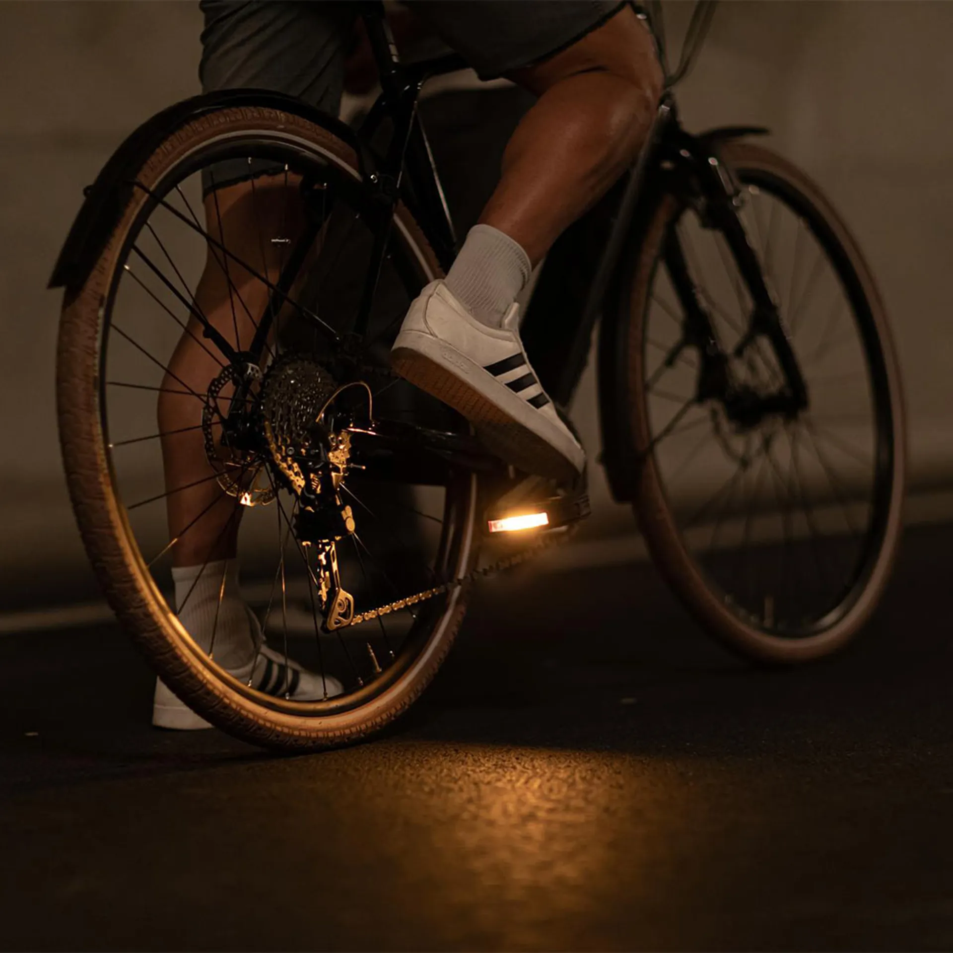 Grip keeps you confident at traffic lights, on wet cobbles and when you push out of a corner. Lights keep you noticed by drivers and pedestrians. A strong, stable platform makes pedalling feel direct and controlled. Together, those things let you ride smoother and stay present.