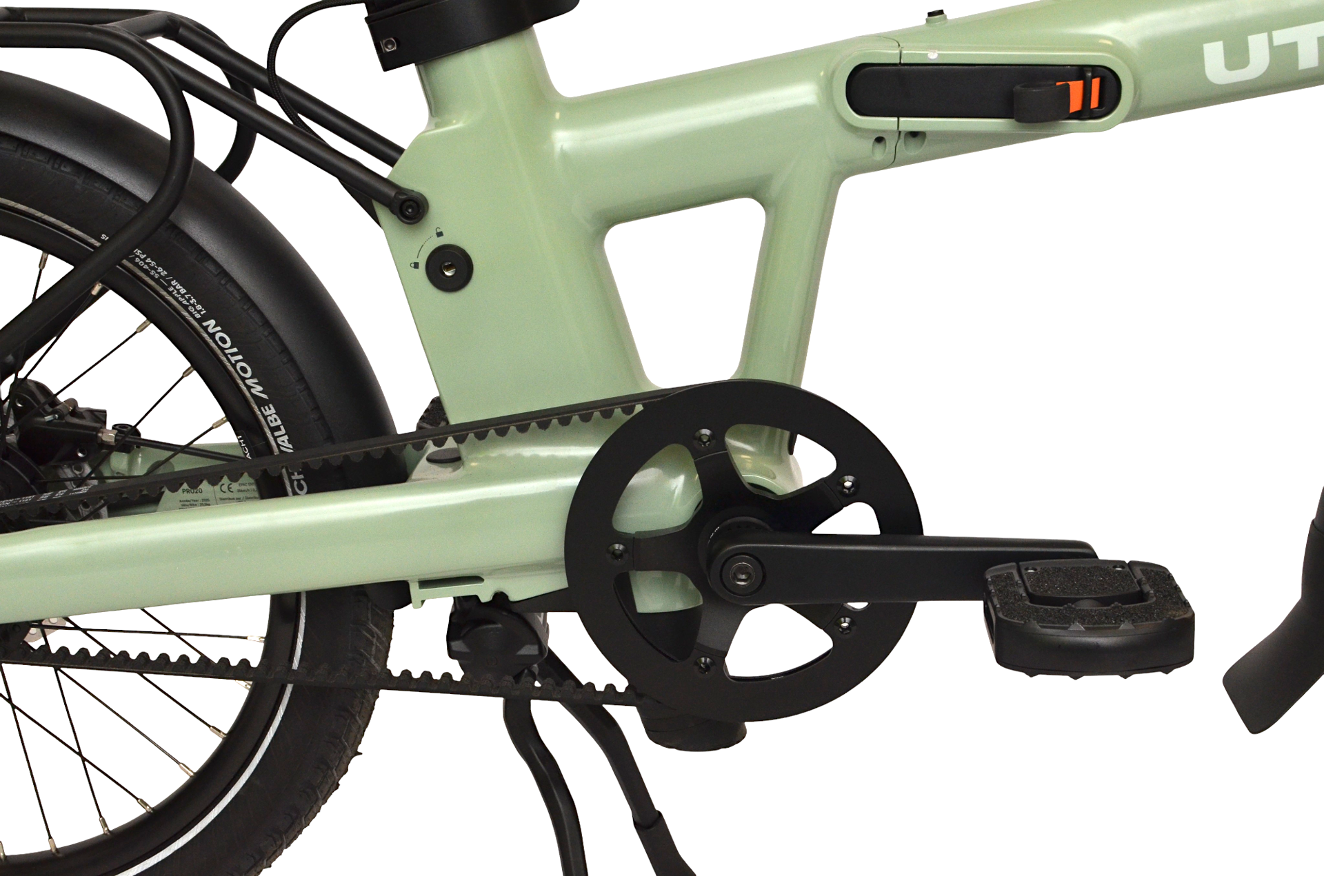 Totally new proprietary design featuring patented auto locking hinges that allow you to unfold the bike in under 5 seconds. The frame also features a patented integrated battery anti theft lock developed with the cycle lock experts ABUS.