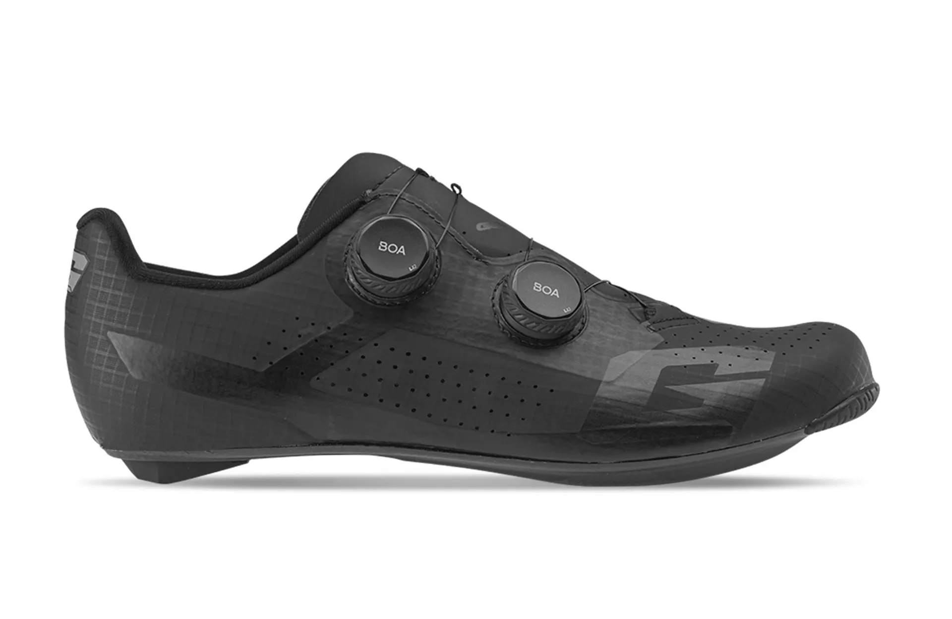 The GAERNE EPS Lightweight Full Carbon Sole 12.0 delivers a high stiffness index and direct pedal feel, while multiple vents and perforations create a better microclimate to manage heat and moisture.